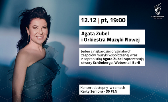 To wyjątkowa okazja, by zanurzyć się w pięknym, współczesnym repertuarze i posłuchać znakomitych artystów – Orkiestry Muzyki Nowej - jednego z najbardziej oryginalnych zespołów w Europie oraz znakomitej sopranistki - Agaty Zubel. Całość poprowadzi maestro Szymon Bywalec.