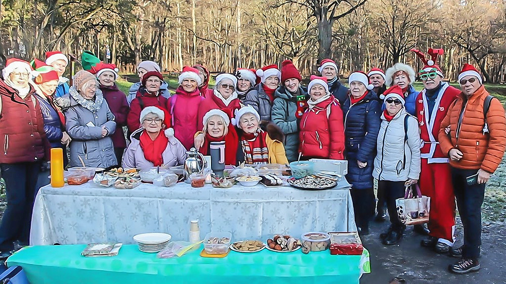 Miesiąc rozpoczęliśmy rajdem śladami Solidarności, 9 grudnia droga wiodła przez Puszczę Bukową z Kijewa na Osiedle Bukowe. Wigilię obchodziliśmy 16 grudnia na Czerwonej Polanie, czytaliśmy ewangelię, były życzenia i opłatek, śpiewaliśmy kolędy i objadaliśmy się smakołykami. Zakończyliśmy miesiąc wędrówką z Głębokiego przez Las Arkoński na Syrenie Stawy, gdzie pożegnaliśmy szampanem i pysznościami rok 2025