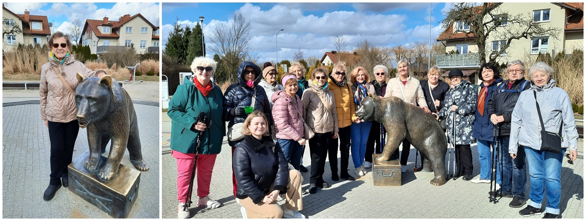 Pomnik Misia Wojtka Grupa seniorów przy pomniku Misia Wojtka