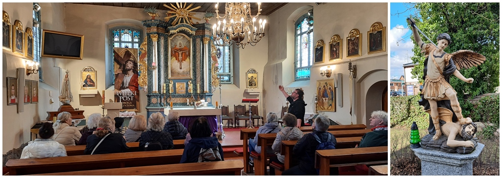 Wnętrze kościoła pw. Św. Rodziny w Krzekowie Pomnik pt.Walka Archanioła
