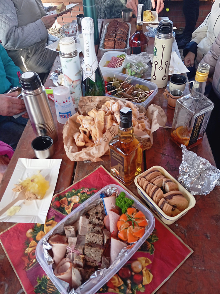 Miesiąc rozpoczęliśmy rajdem śladami Solidarności, 9 grudnia droga wiodła przez Puszczę Bukową z Kijewa na Osiedle Bukowe. Wigilię obchodziliśmy 16 grudnia na Czerwonej Polanie, czytaliśmy ewangelię, były życzenia i opłatek, śpiewaliśmy kolędy i objadaliśmy się smakołykami. Zakończyliśmy miesiąc wędrówką z Głębokiego przez Las Arkoński na Syrenie Stawy, gdzie pożegnaliśmy szampanem i pysznościami rok 2025