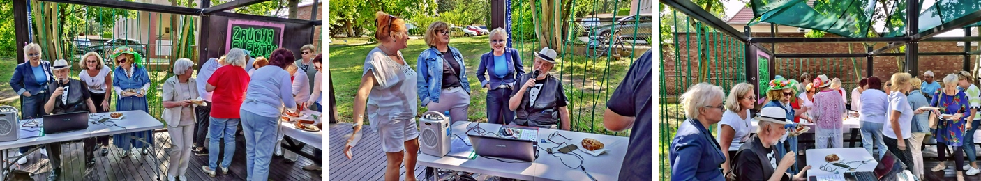 W czwartek 20 IX 2024 r. już tradycyjnie odbyło się Święto Pieczonego Ziemniaka. Wszyscy ( no, prawie wszyscy) studenci trzeciego wieku z naszego SUTW bawili się świetnie na błoniach Szczecińskiego Inkubatora Kultury w godzinach przedpołudniowych – między 11-tą a 15-tą. Czego tam nie było?! Były w ramach oczywistego faktu, że ruch to zdrowie, gimnastyczne zmagania pod czujnym okiem instruktorki; tańce do muzyki emitowanej z komputera i wzmocnionej głośnikami; piosenki – szlagiery wszech czasów – śpiewane przez kolegę Jana; występy Kabaretu DWUDZIESTOLATEK; nauka tańca inicjowana przez koleżanki z Zespołu ARABESKA; pieczenie kiełbasek i ziemniaków; konsumpcja różnych, innych od kiełbasek, specjałów, które serwowały nam Arabeski; rozmowy towarzyskie…