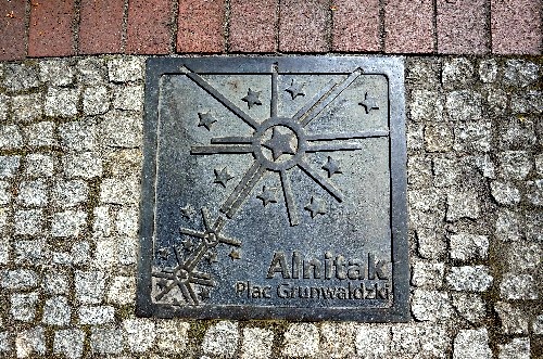1.Płyta mosiężna z gwiazdą ALNITAK na pl. Grunwaldzkim.