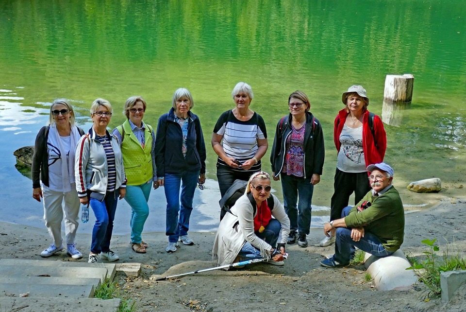 W drugą środę miesiąca obeszliśmy jezioro Szmaragdowe, korzystając z dogodnych dla turystów duktów i ścieżek. Podziwialiśmy i zachwycaliśmy się nietypowym odcieniem zieleni wód tego małego akwenu otoczonego zewsząd lasem.